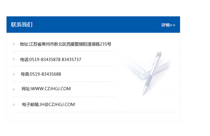 傳真:0519-83435688    郵編:213135    網址:WWW.czjhgj_com.tzdsdt.com    電子郵箱:JH@czjhgj_com.tzdsdt.com
